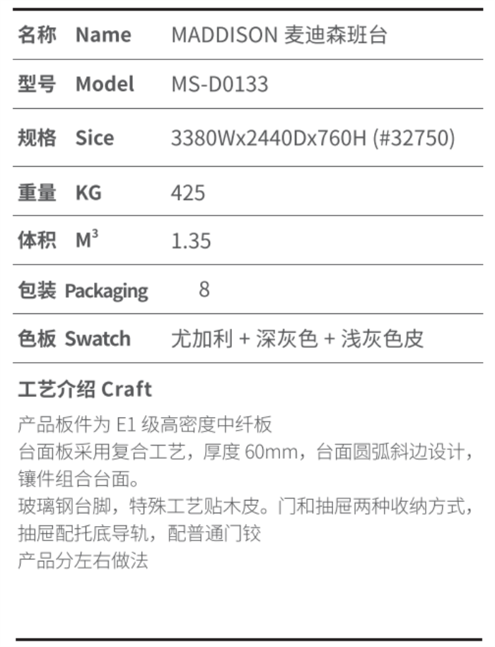 订购:麦迪森总裁台 大班台定制 MS-D0133